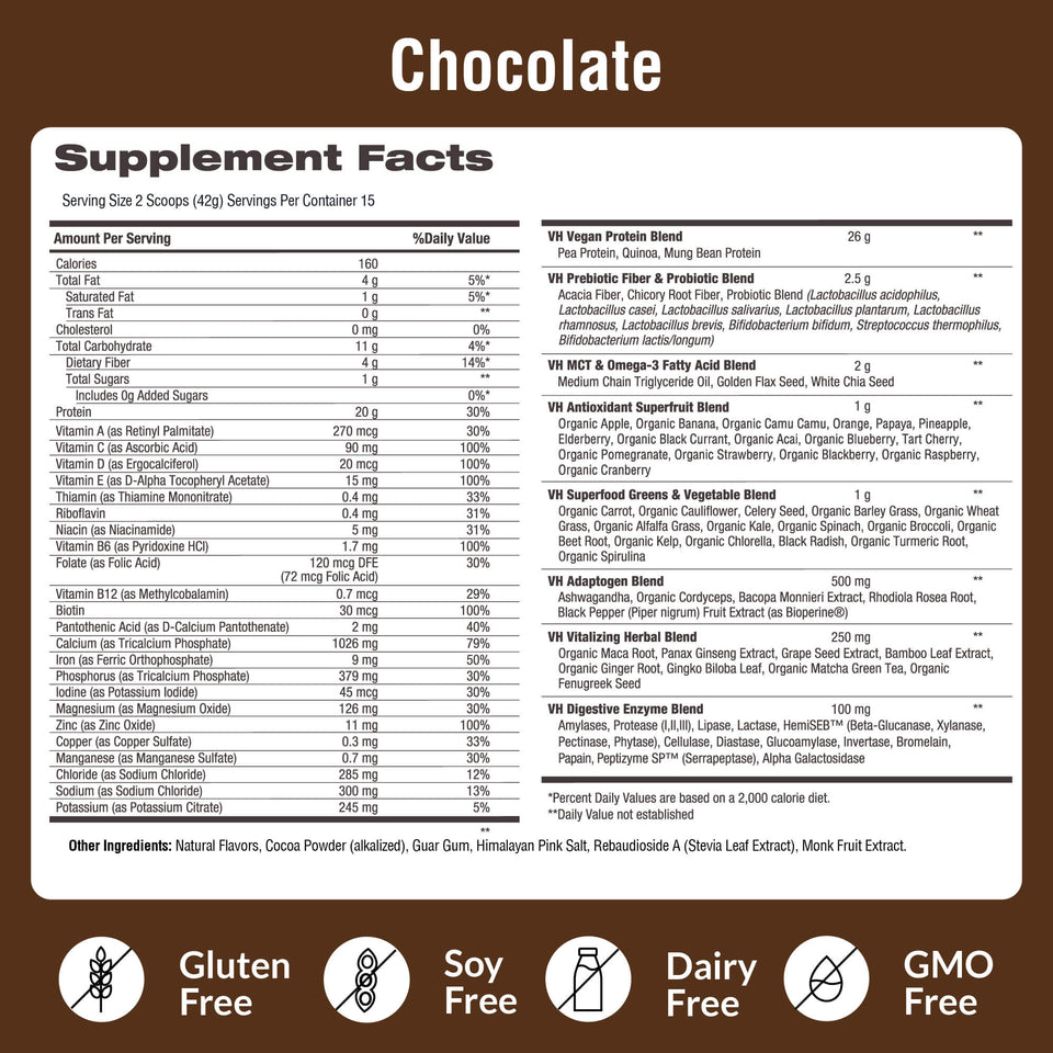 Packed with plant-based protein, vitamins, and probiotics for optimal energy, hunger satisfaction, and gut health.