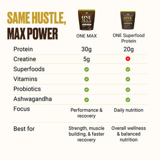 In every scoop, ONE MAX delivers everything you need to feel stronger, recover faster, and improve power. It's the same hustle, with MAX power.